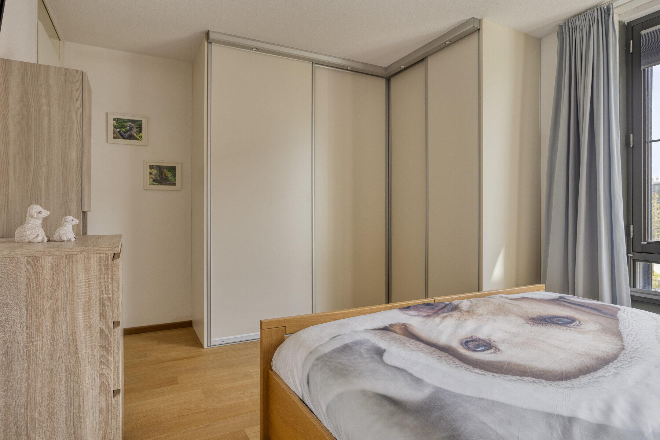 Via de verlengde hal bereik je de twee ruime slaapkamers. Beide kamers zijn netjes afgewerkt en voorzien van een doorgelegde parketvloer, wat zorgt voor een mooie eenheid in de woning.