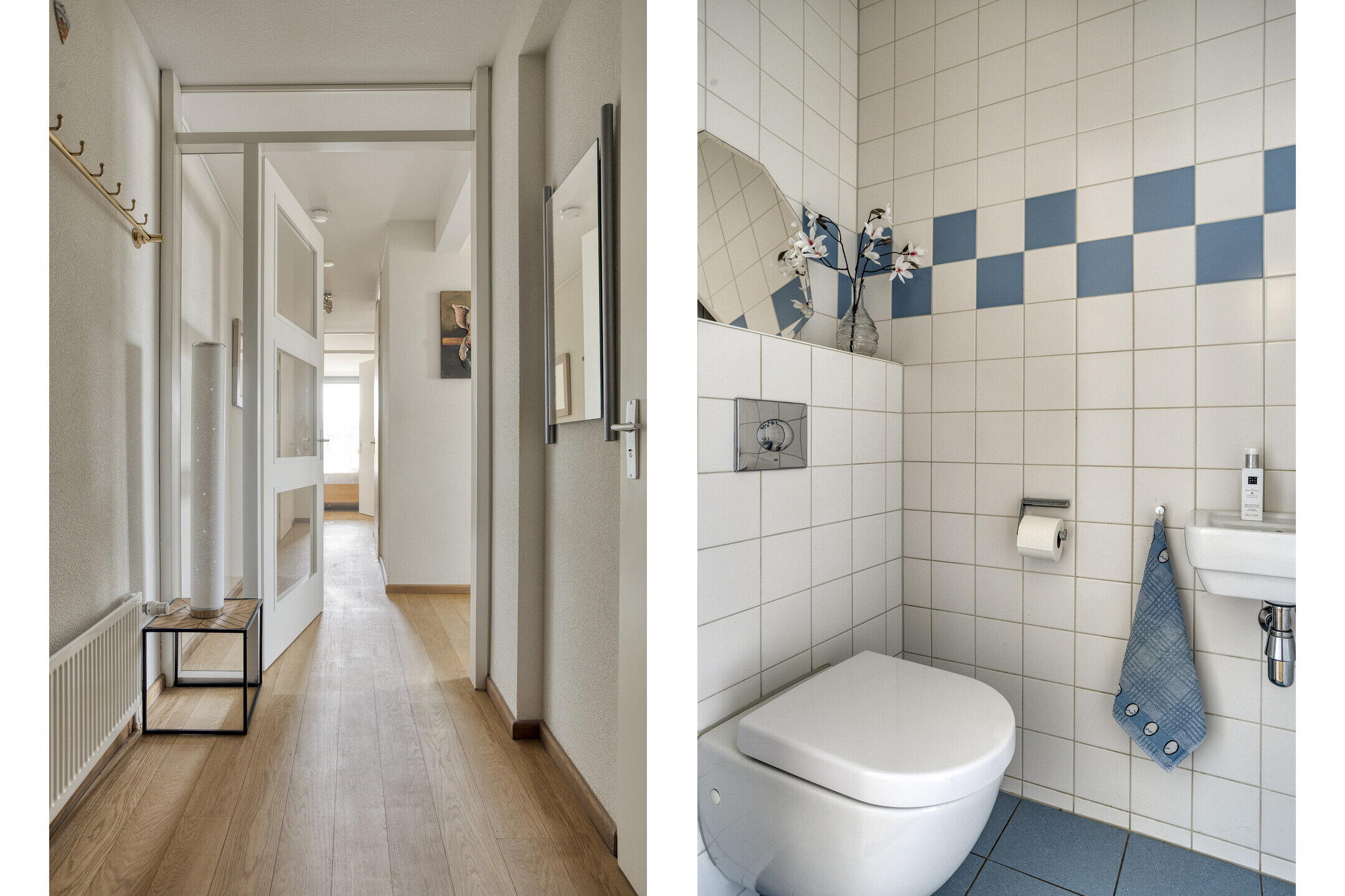 Je komt binnen in een nette hal met ruimte voor een garderobe en toegang tot het toilet. Vanuit hier heb je een prettige doorloop richting de leefruimte, wat direct zorgt voor een open en uitnodigend gevoel.